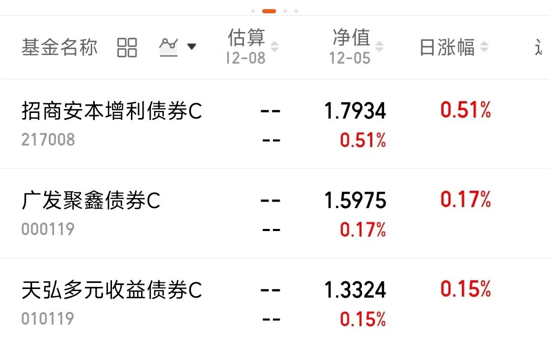 买基金最怕的就是天天看涨跌闹心,偏债基金完全没这烦恼!它的波动比混合型、股票型基金小太多,净值曲线大多慢慢往上走,不会大起大落。$招商安本增利债券C(OTCFUND|217008)$上周五收了51个蛋,$广发聚鑫债券C(OTCFUND|000119)$收了17个蛋,$天弘多元收益债券C(OTCFUND|010119)$收了15个蛋。