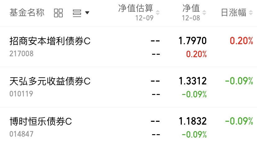 偏债基金太适合稳当人了!主要投债券,股票占比少,波动比纯股基、混合基小太多,不用天天盯盘担惊受怕。就算市场震荡,它也能靠债券收益扛住,本金安全性高。$招商安本增利债券C(OTCFUND|217008)$昨日收了20个蛋,$天弘多元收益债券C(OTCFUND|010119)$和$博时恒乐债券C(OTCFUND|014847)$均碎了9个蛋。