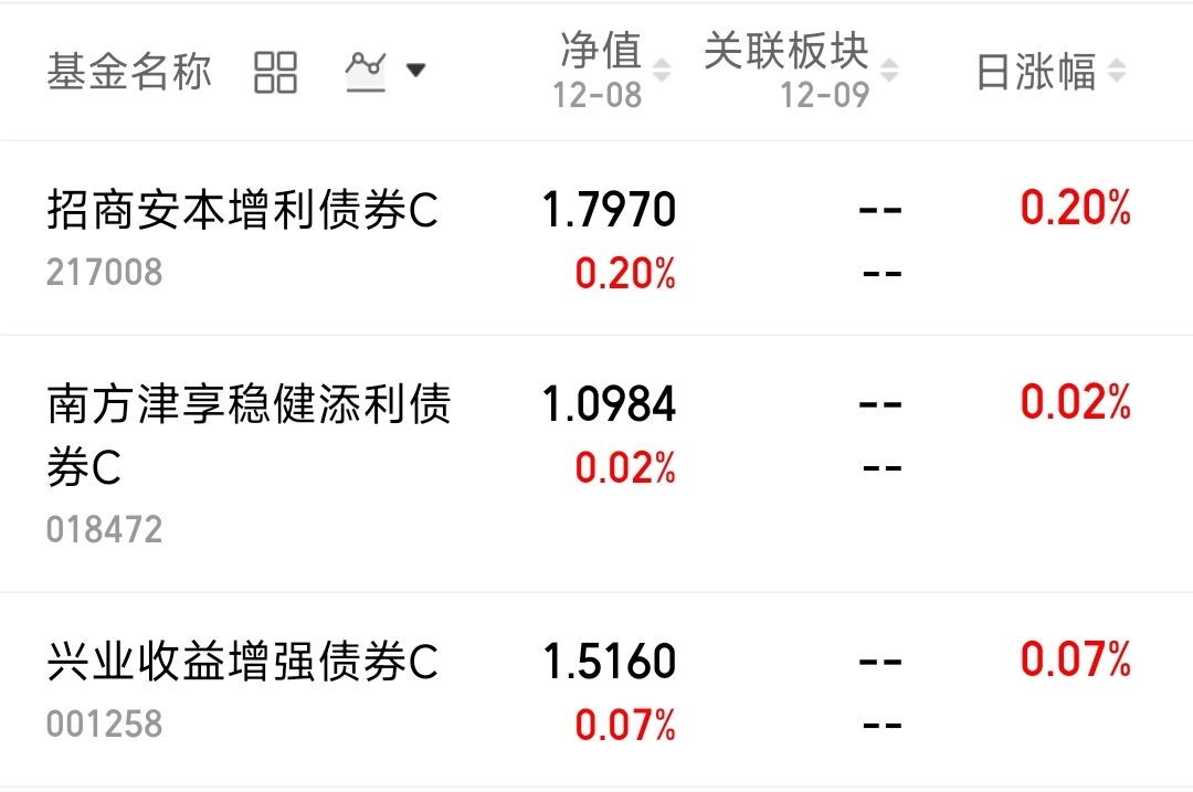 上手简单不费脑!不用研究复杂赛道和个股,基金经理会帮着搭配债券和股票比例,省心又省力。不管是刚入门的新手,拿它打底持仓都合适。$招商安本增利债券C(OTCFUND|217008)$收了20个蛋,$南方津享稳健添利债券C(OTCFUND|018472)$收了2个蛋,$兴业收益增强债券C(OTCFUND|001258)$收了7个蛋。