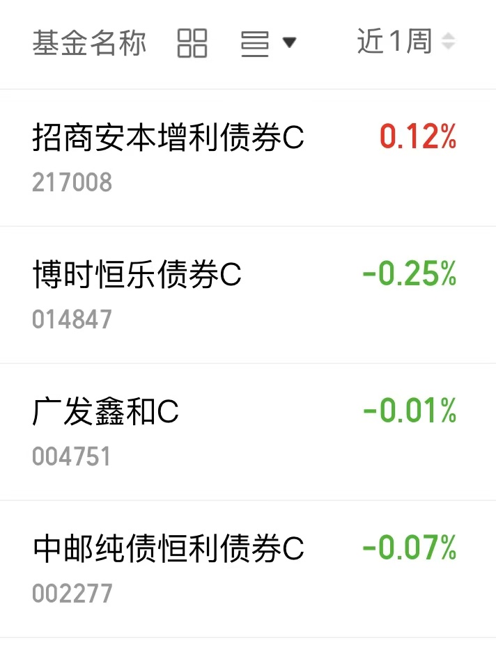最近债市延续调整,还好这几天开始修复回暖了,纯债也稳稳的收蛋了,混合债基稳中有进,表现出色,来看看近一周收蛋情况: