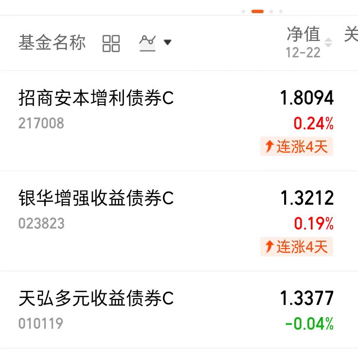 股市行情向好,心里更有底了,固收+策略以债基打底,权益市场增强,这样就比较有优势,$招商安本增利债券C(OTCFUND|217008)$昨天收蛋24个,厉害。