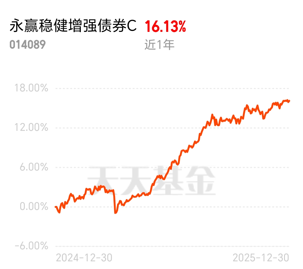 这年头,求稳还真不能只看债,我看固收+有股债搭配,都是涨多跌少,这只稳健增强一年收益率也有16点多了,好像又刷新记录了!涨起来有张力,回调的时候有债打底,累计下来零花钱又有了!