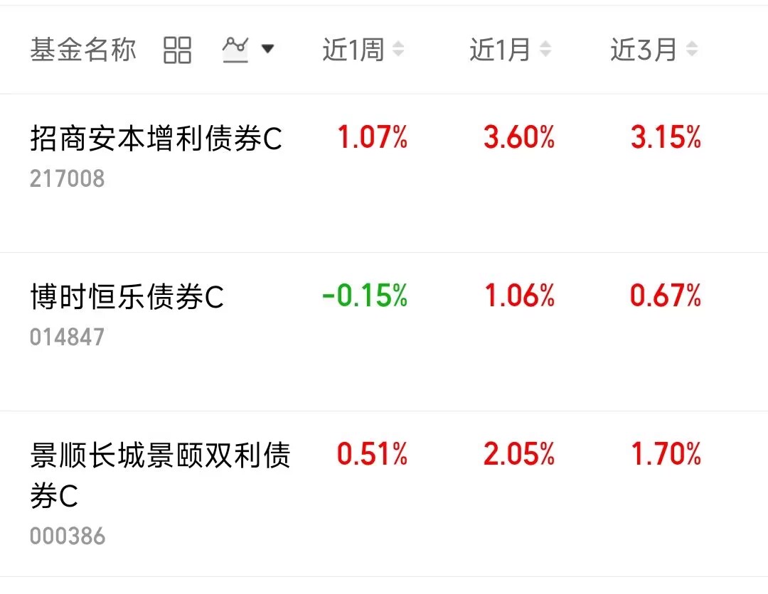 闲钱放着也是浪费,不如投偏债基金!既能稳健增值,又不耽误日常急用,还能比活期多赚一笔。这类基金净值很少回调,就算偶尔波动,幅度也小、持续时间还短,很快就能涨回来,$招商安本增利债券C(OTCFUND|217008)$近1周收了107个蛋,$博时恒乐债券C(OTCFUND|014847)$碎了5个蛋,$景顺长城景颐双利债券C(OTCFUND|000386)$收了51个蛋。