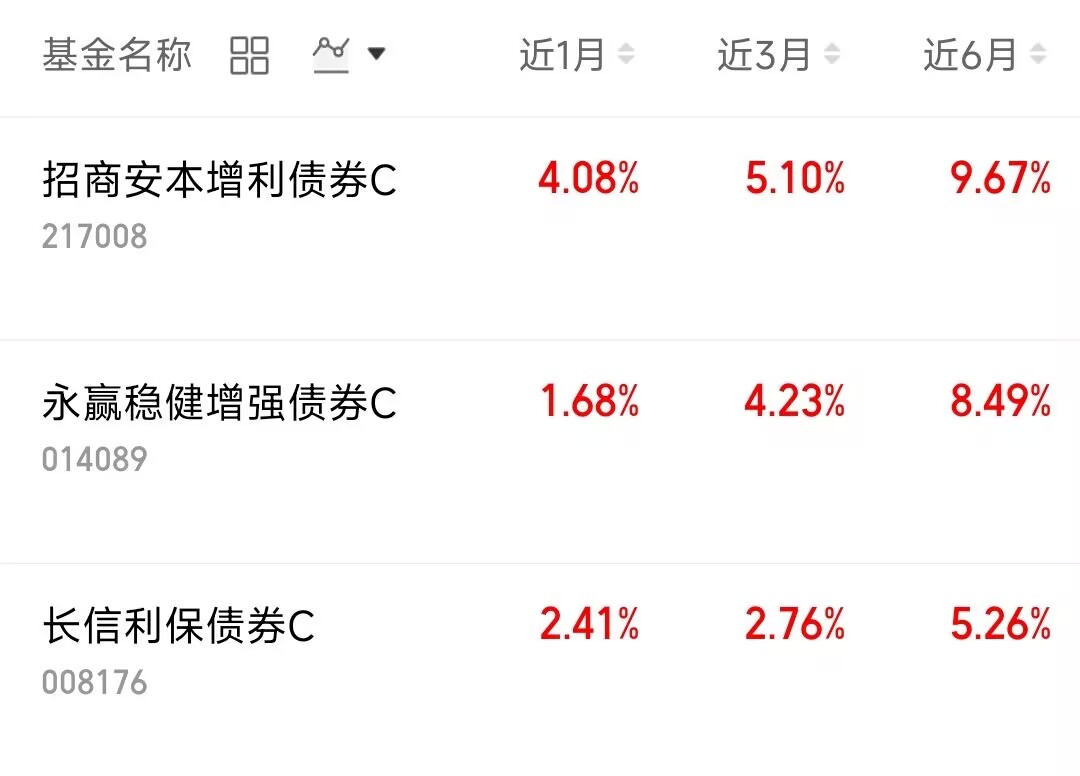 偏债基金抗跌性是真的强!股市大跌时别人亏得多,它却跌得少,甚至可能逆势上涨。选偏债基金准没错!风险低、收益稳,持仓过日子都踏实。$招商安本增利债券C(OTCFUND|217008)$近1个月上涨4.08%,$永赢稳健增强债券C(OTCFUND|014089)$上涨1.68%,$长信利保债券C(OTCFUND|008176)$上涨2.41%。