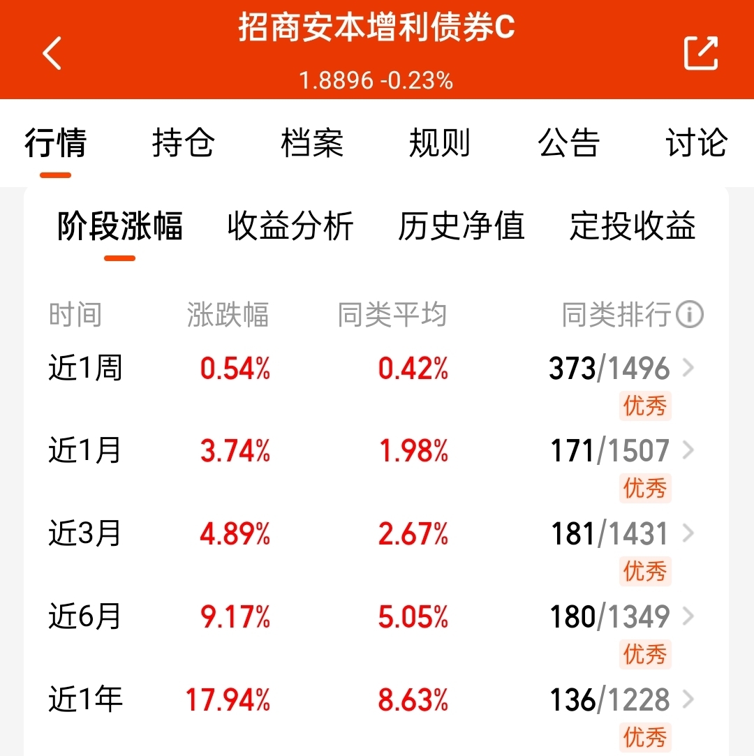 招商安本增利债券C,近1个月收蛋374个,近一年涨幅+17.94%,在股市和债市有波动的背景下,该基金低风险、稳收益的特性吸引人,债券占比80%左右,波动小,18%左右的股票仓位跟上股牛节奏,值得持续看好。