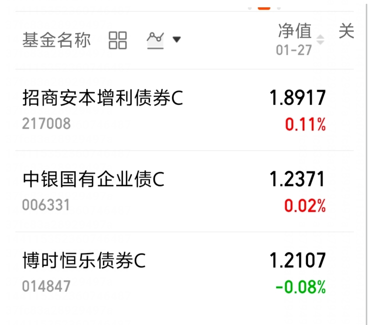 昨天我关注的债基里,招商安本增利债券C产生了11个蛋收益,博时恒乐债券C减少了8个蛋收益,中银国有企业债C增加了2个蛋收益。
