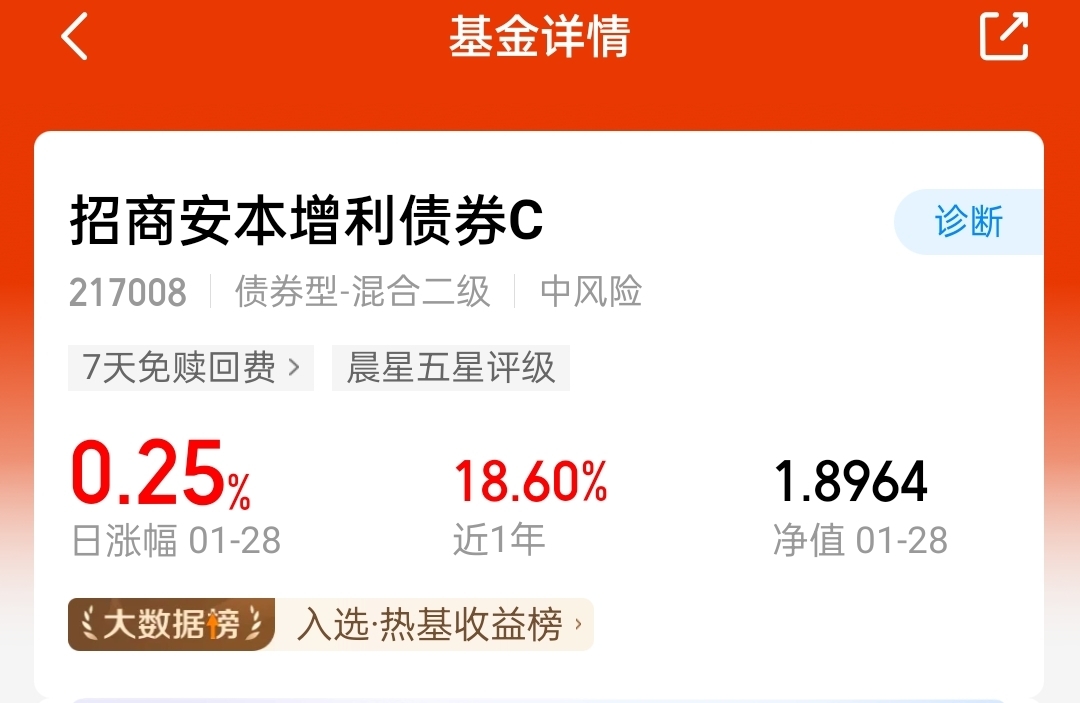 固收+收蛋不错呀!招商安本增利债券C,周三收蛋 +25个,还实现连涨2天,近一年收益率达18.6%,在同类产品中成绩突出。它风险相对较低,股债搭配,在追求收益的同时兼顾安全性,低波动高收益。
