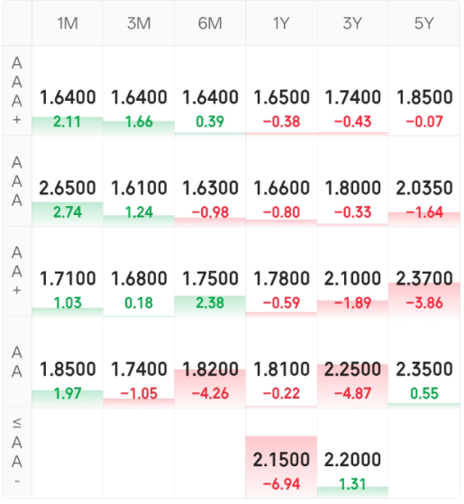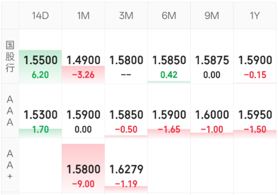 同业存单:晴天,涨多跌少。
