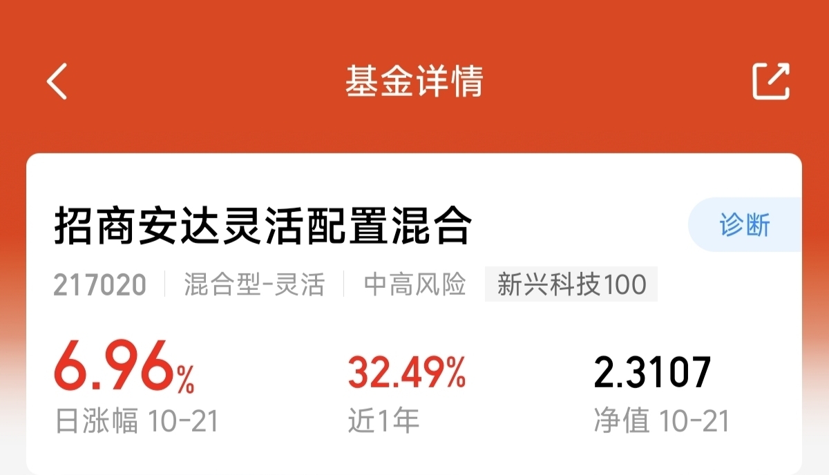 CPO看来还是科技主线。昨天再次迎来全线回归。$招商安达灵活配置混合$ 是主动的科技机器。聚焦科技成长。主投CPO产业链,昨天上涨了6.96%。同类基金涨幅继续领先。而且持仓整体更均衡。长期表现做到了涨多跌少。期待四季度继续突破。