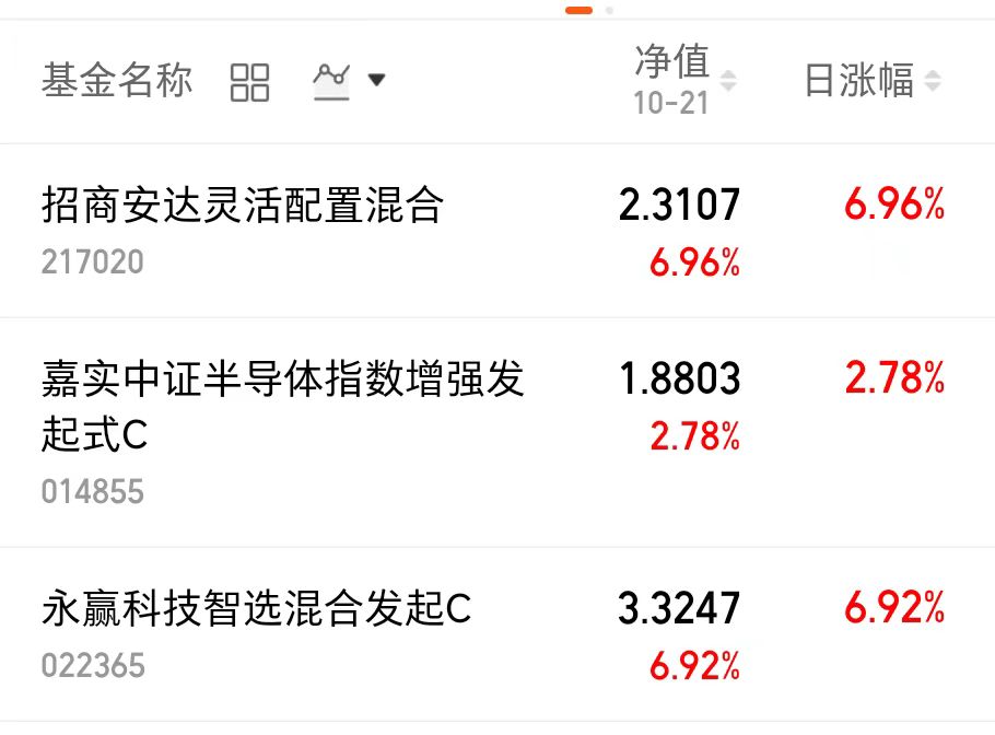 $嘉实中证半导体指数增强发起式C(OTCFUND|014855)$昨天上涨2.78%$永赢科技智选混合发起C(OTCFUND|022365)$昨天上涨6.92%