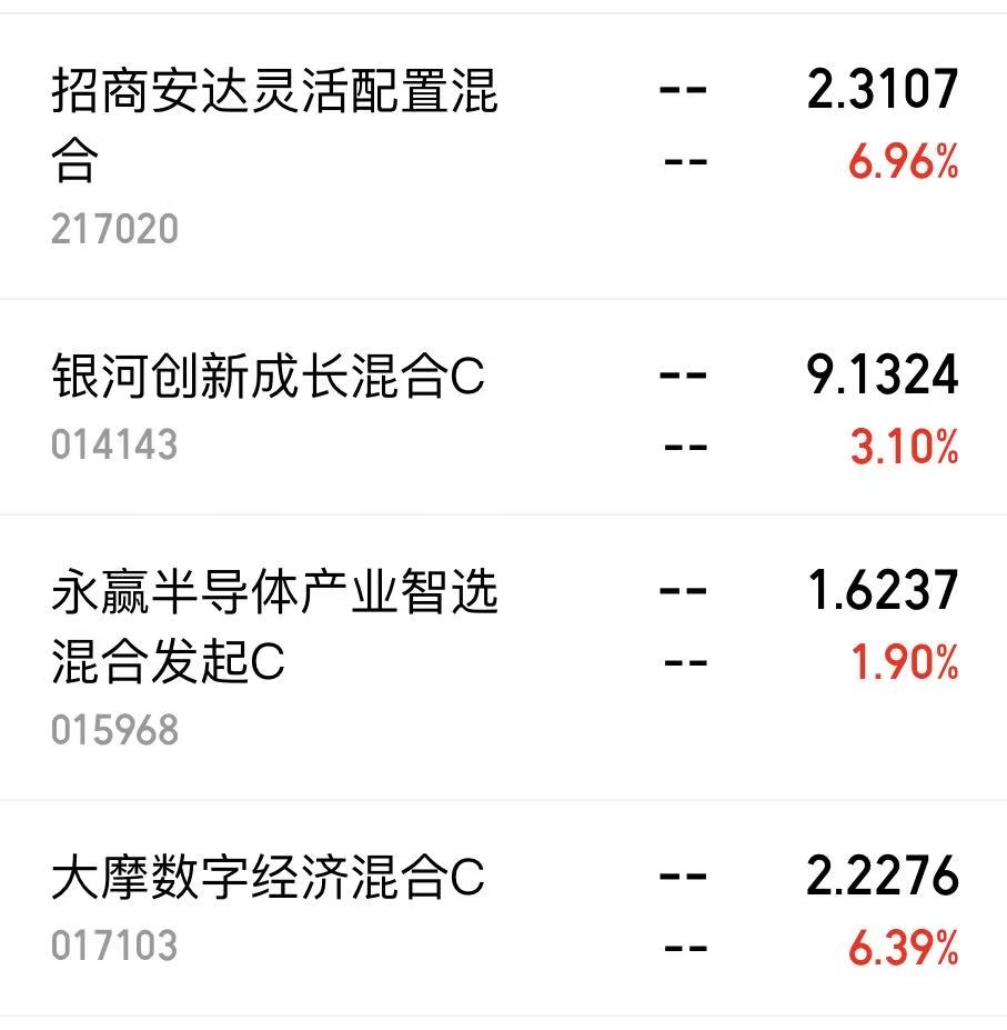 今天大盘震荡,不过科技方向还是挺能抗的,很多都稳住了,昨天大涨行情下CPO、半导体等方向都是涨幅比较给力的,来看看昨天净值情况