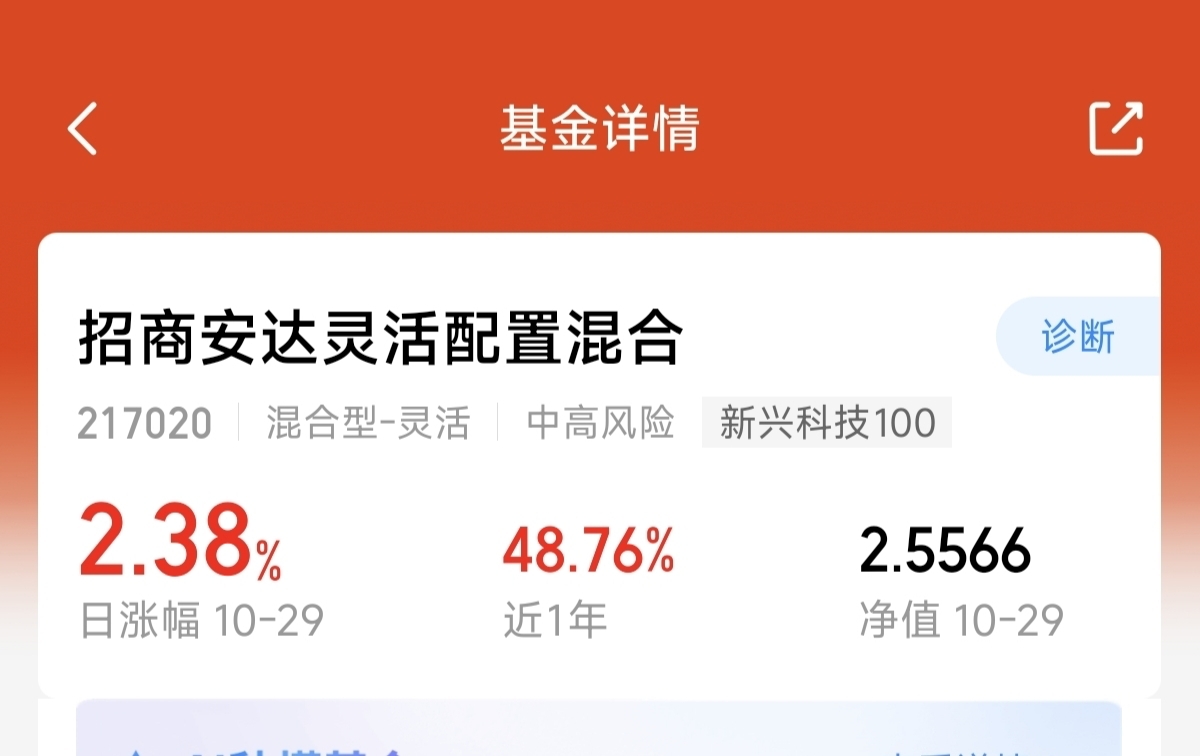 三大指数今天小幅低开。不过表现的依然比较稳,当前继续看好科技的成长方向。$招商安达灵活配置混合$ 这只主动的科技混合基金。昨天又上涨2.38%。爆发力的表现确实强。昨天科技整体分化,同类再次做到了优秀。期待今天继续突破。