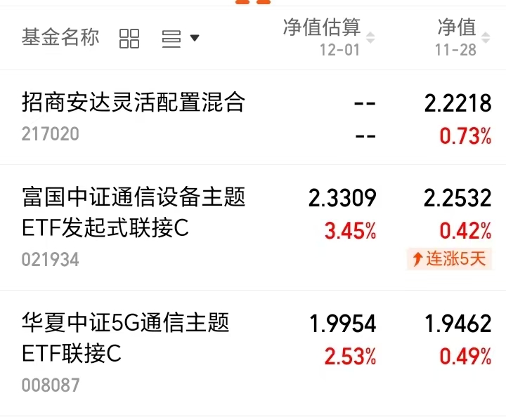 $华夏中证5G通信主题ETF联接C(OTCFUND|008087)$上周五上涨0.49%。