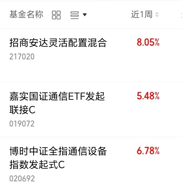 $嘉实国证通信ETF发起联接C(OTCFUND|019072)$近一周上涨5.48%;