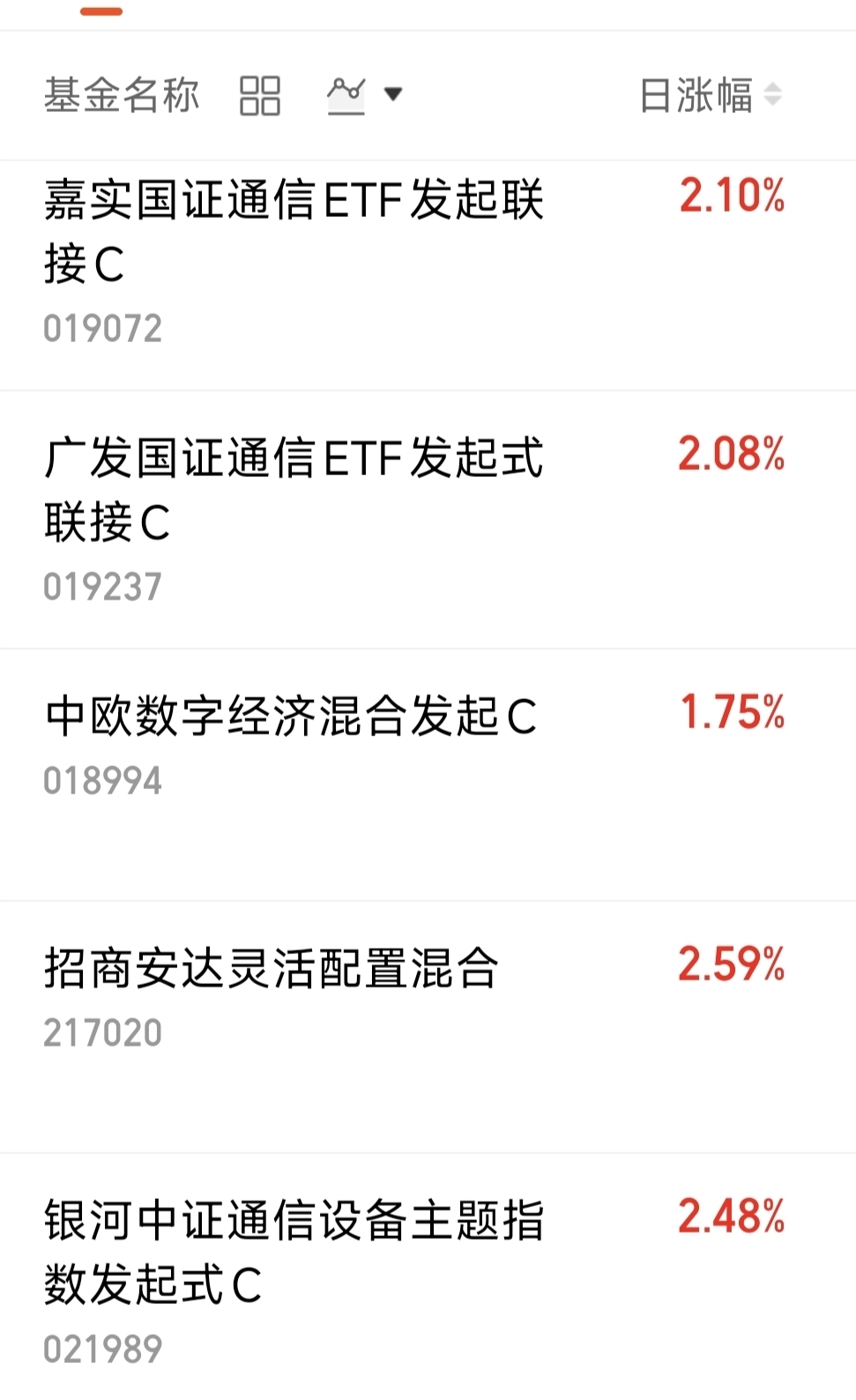 $广发国证通信ETF发起式联接C$ 2.08%。