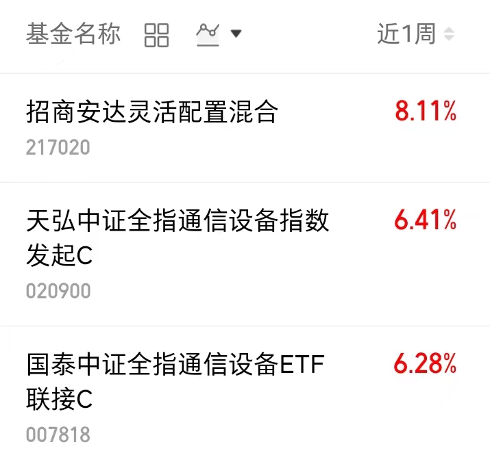 $国泰中证全指通信设备ETF联接C(OTCFUND|007818)$近一周上涨6.28%,