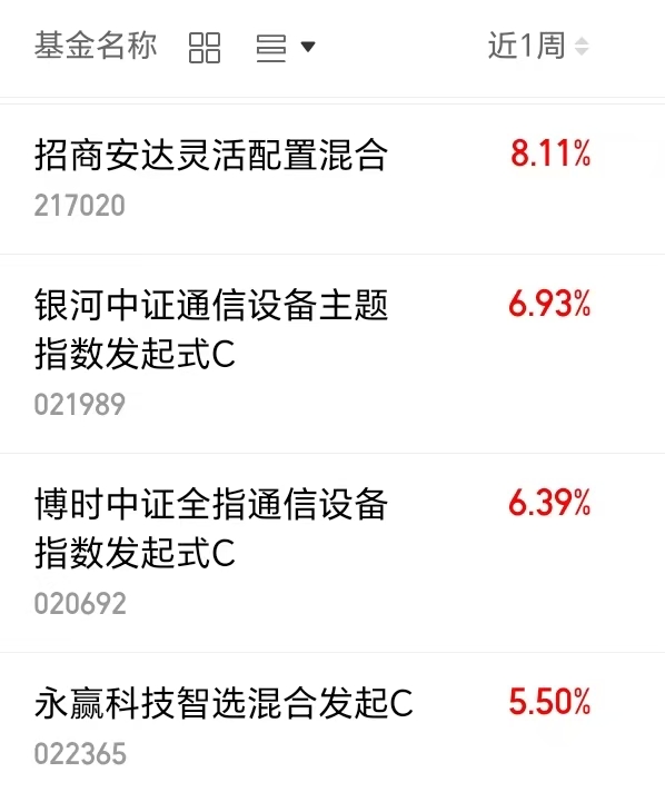 $银河中证通信设备主题指数发起式C(OTCFUND|021989)$近一周上涨6.93%;