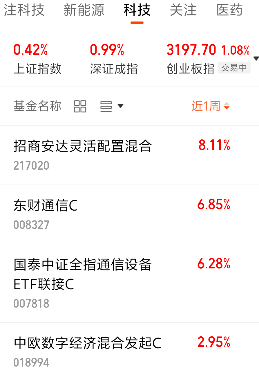 $中欧数字经济混合发起C$ 近一周上涨了2.95%