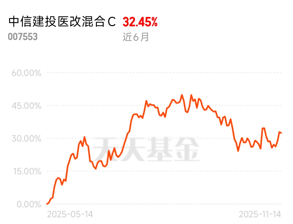最近医药板块回暖,一边拿着招商优势企业A,一边加仓了中信建投医改C它聚焦医改全链条,覆盖创新药、器械到医疗服务,谢玮长期管理,风格偏成长,这波回条正好分批布局。