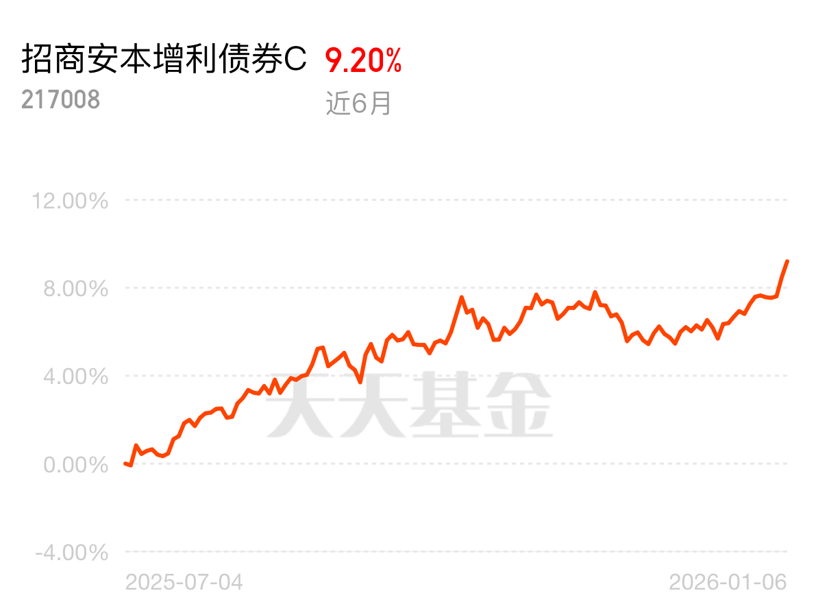 普通人理财别贪高收益,稳赚才是王道。招商安本增利债券 C 近 6 月 9.20%,收益实实在在,风险低波动小,长期持有更划算。$招商安本增利债券C$