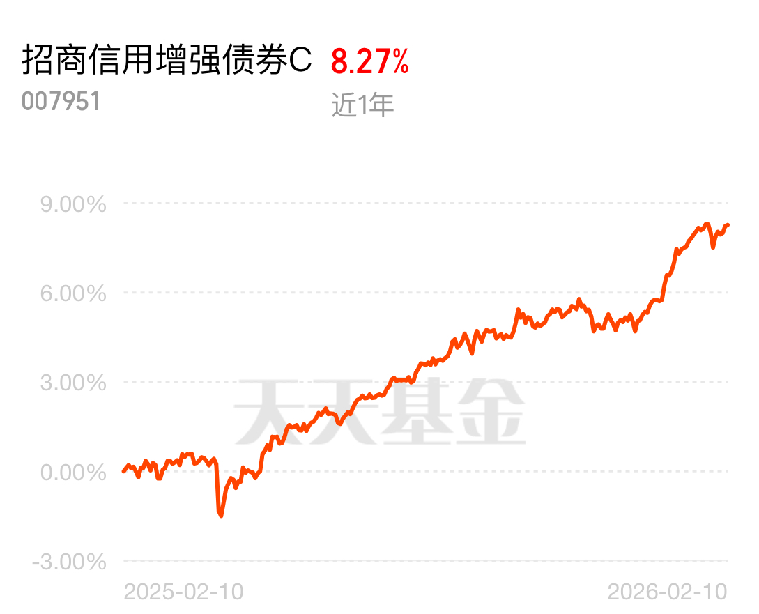 年前行情弱,别乱加仓权益,配固收 + 更安全。招商信用增强债券 C,近一年 8.27%,回撤才 2%,昨日涨 0.05%,做底仓妥妥的,当下位置正合适,继续布局。$招商信用增强债券C$