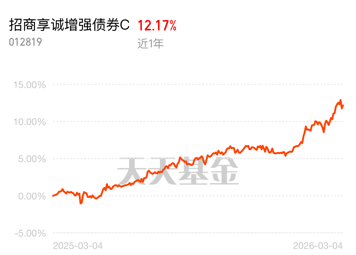 怕行情突变吞掉收益,底仓一定要选回撤小的,它完美符合。招商享诚增强债券 C 昨天涨 0.36%,近一年 12.17%、回撤才 1.9%,当下位置正好继续布局。