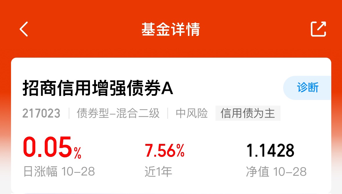 沪指已经来到了4000点,虽然说有点压力,但是整体来说突破的概率还是非常大的,虽说昨天市场出现了点冲高回落,一些固收类的基金有丢蛋的情况,但是$招商信用增强债券A$ 他表现了却非常的稳定,竟然还有我当的收获,不得不说这个业绩做得还是很给力的