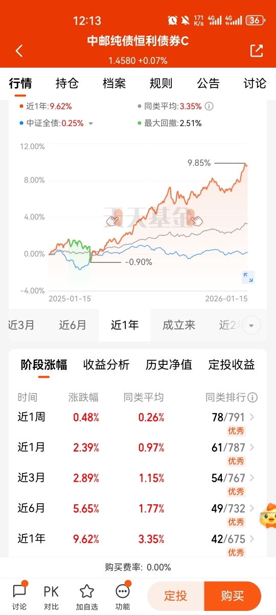 投资的$中邮纯债恒利债券C$一年下大蛋962个,现在可转债,信用债挺不错呀而且已