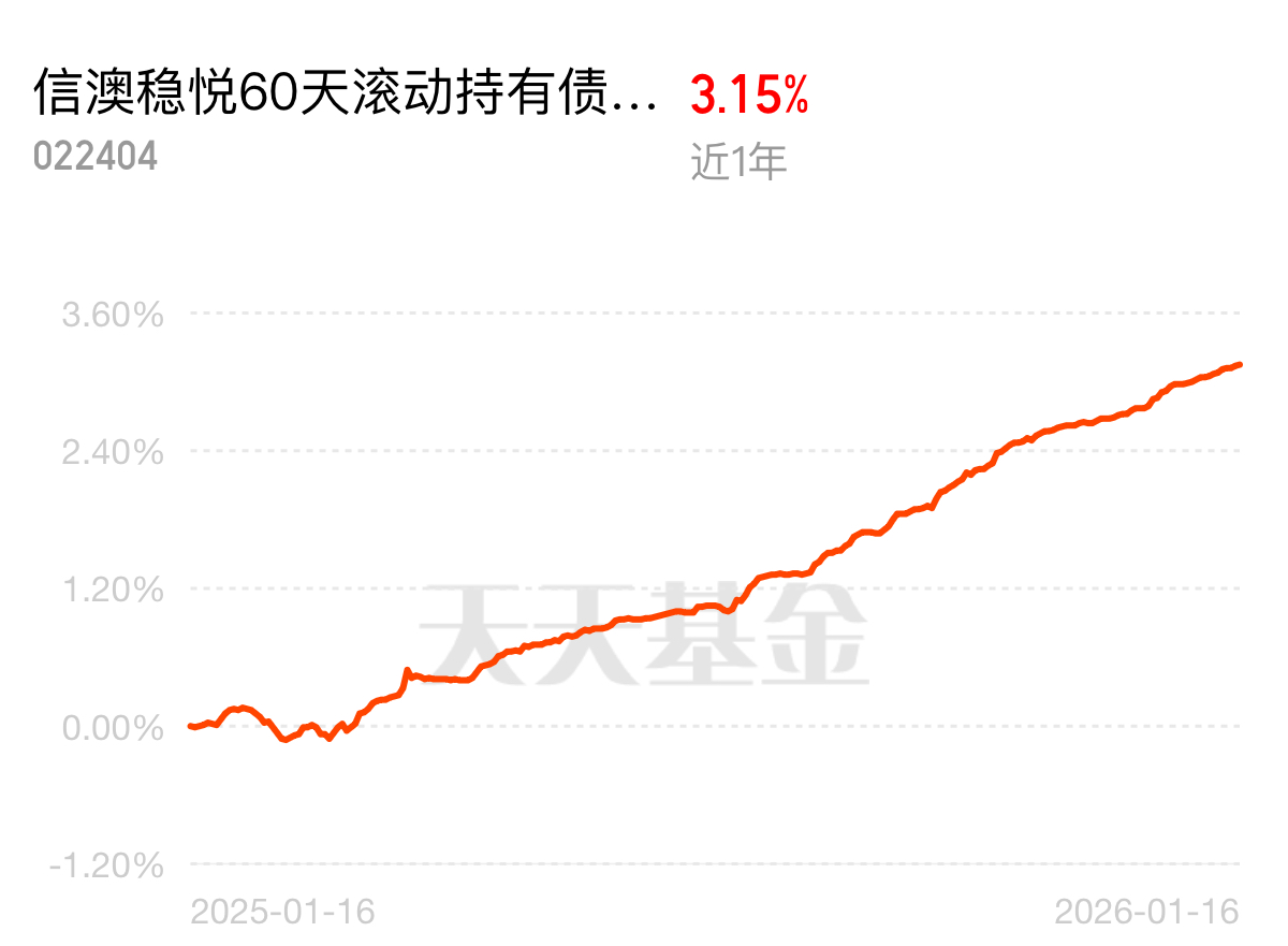 大家都在找好基,债市也给力争气$信澳稳悦60天滚动持有债券C$ 凭真本事吃饭,变化3.15%远超银行,闲钱放这儿感觉更值