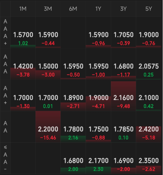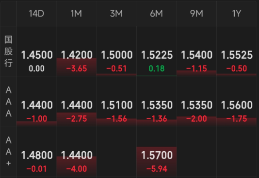 同业存单:晴天,涨多跌少。