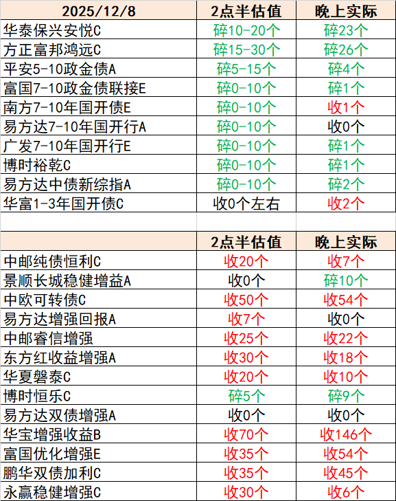 热门债基尾盘估算12.09——晓珠宝粉丝专享
