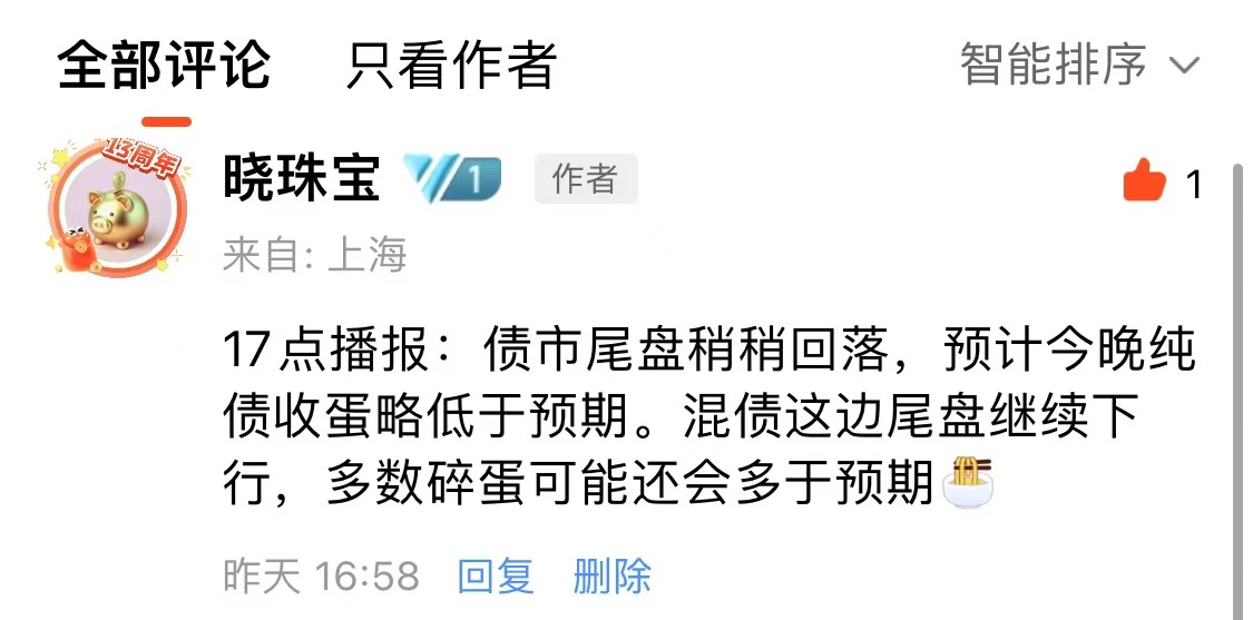 注意,如果播报后,债市尾盘拉升或者跳水,17点左右我会在估值帖子的评论区更新情况。