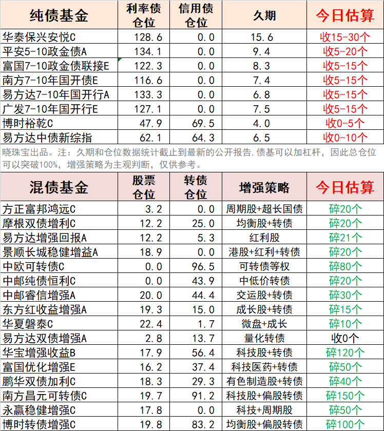 热门债基尾盘估算2.5——晓珠宝粉丝专享