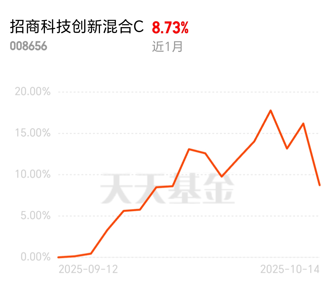 看市场行情,科技50指数虽有涨跌,但优质基金在抓机会。招商科技创新混合C近1个月