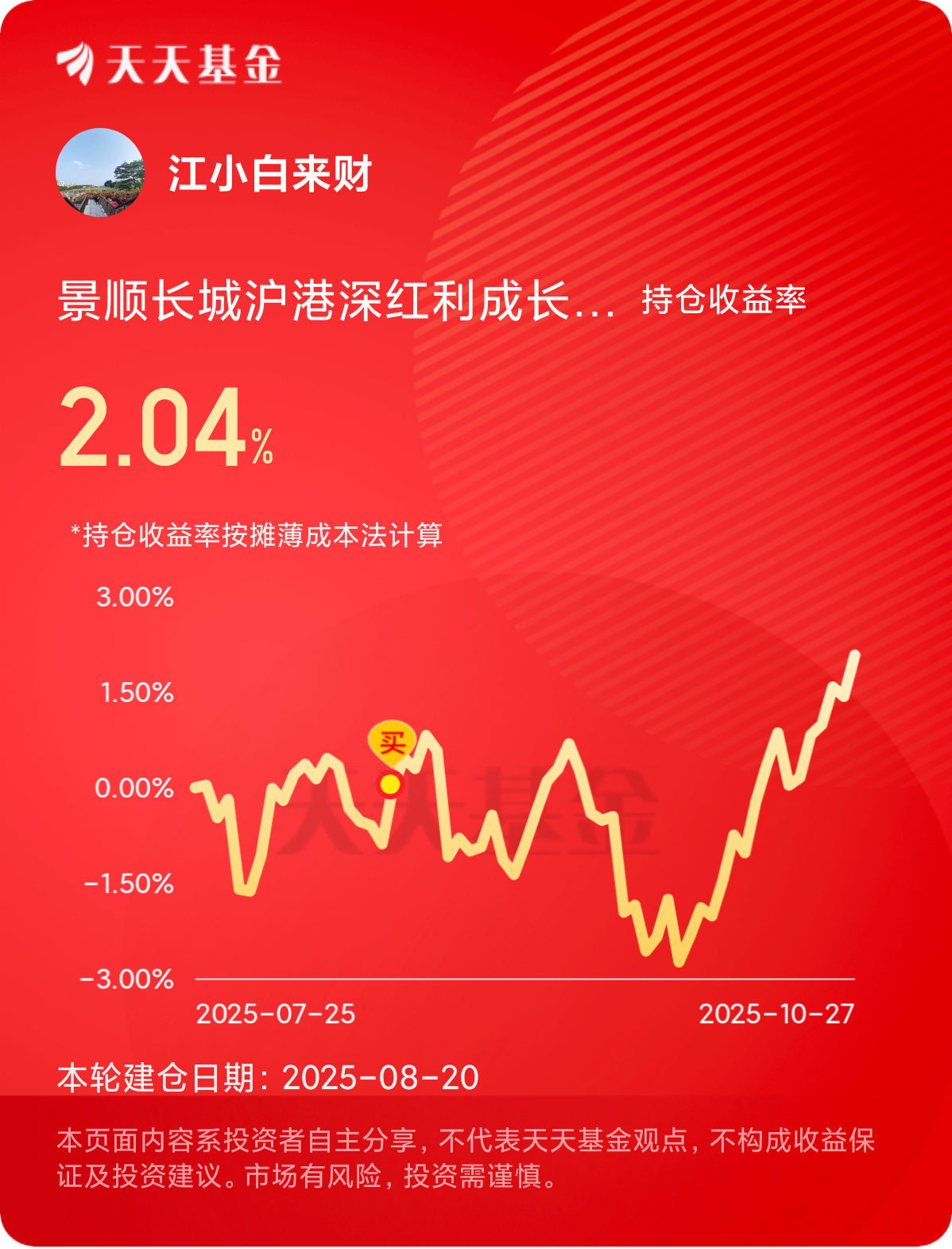 景顺的红利昨天收64个蛋,红利策略还是很有优势的,继续拿住$景顺长城沪港深红利成