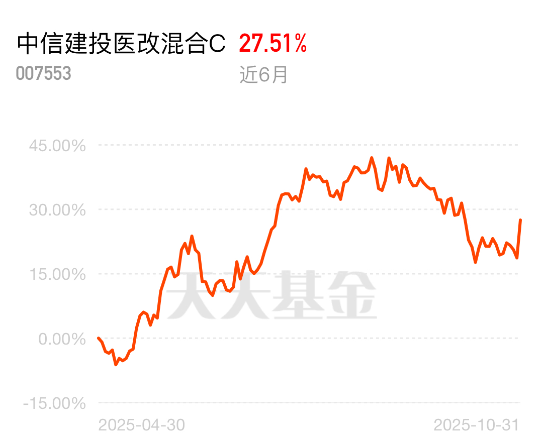 医疗最近势头太猛了!板块连续回暖,今天更是火力全开,行情稳了。中信建投医改灵活配置混合C今晚涨7.44%,近六月大涨27.51%,这种好标的,不买等啥?$中信建投医改混合C$