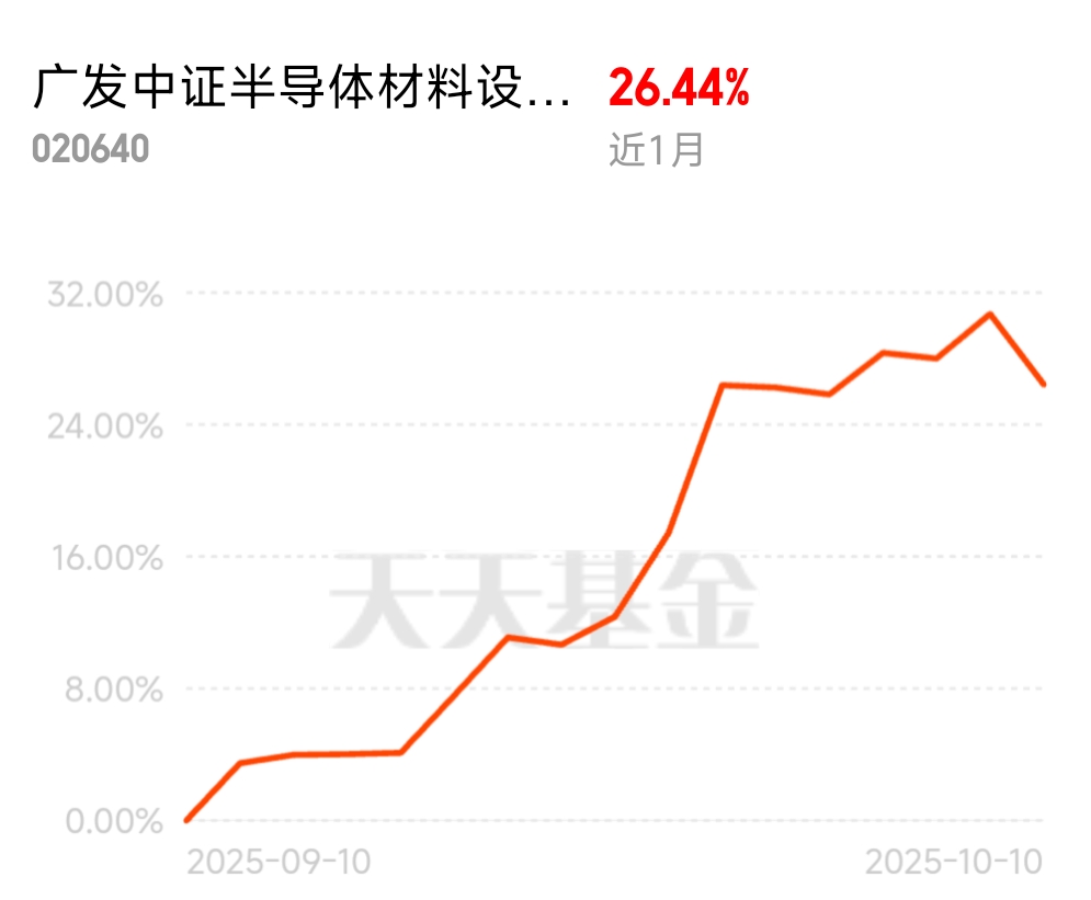 大跌没来啊!我就说这个半导体材料设备能涨!今天感觉少说能吃到2个点啊!看好你$广发中证半导体材料设备ETF发起式联接C$