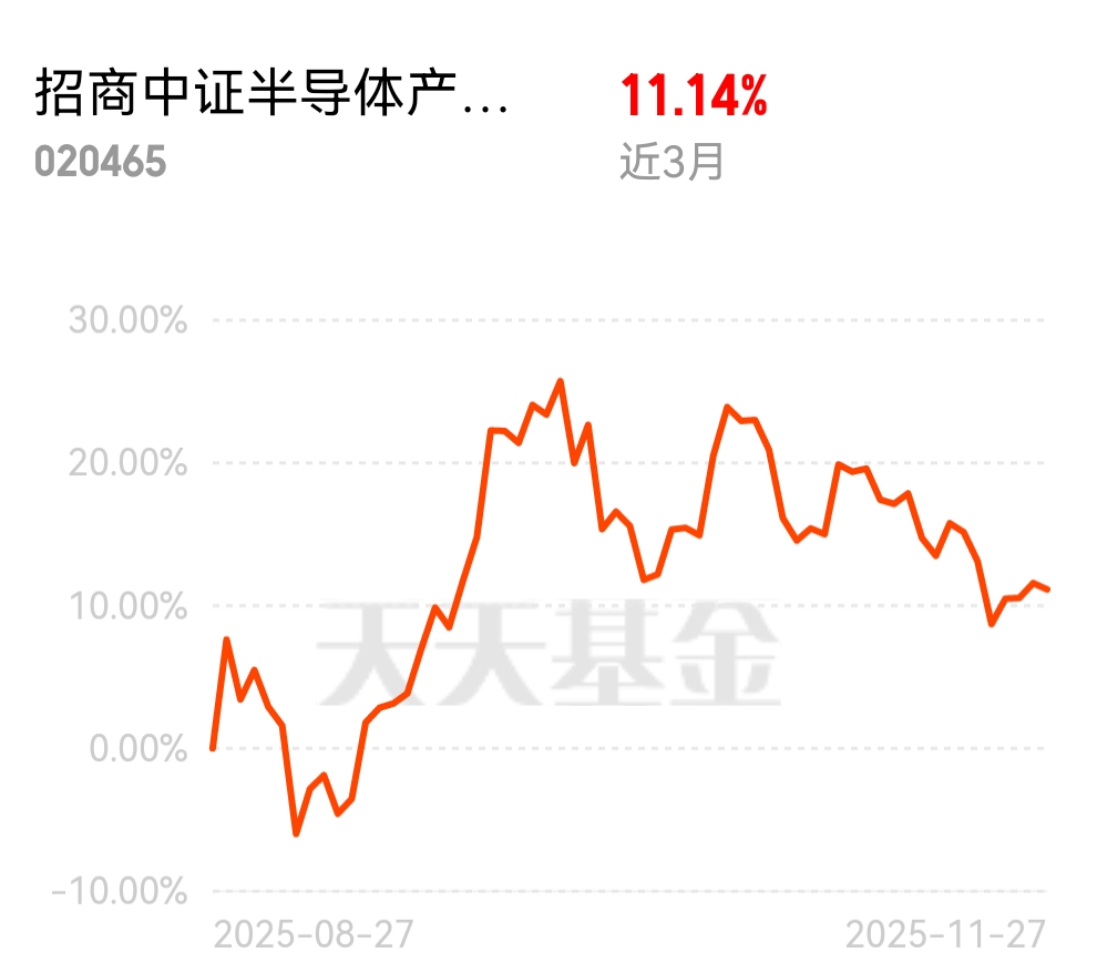 今天市场呈现V字拉升走势,震荡后逐步回升,半导体板块受前期利好带动,整体走势稳健。招商中证半导体产业ETF联接C近3个月业绩有11.14%,契合市场投资热点,值得重点关注。