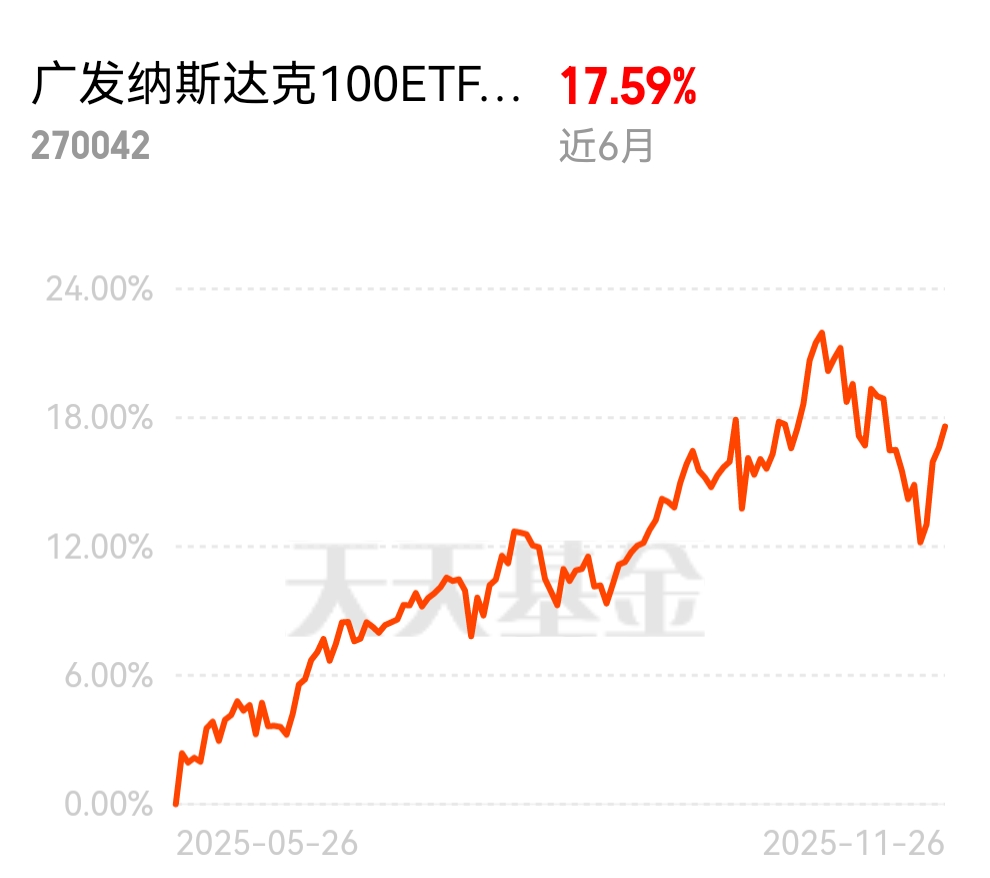 连涨四天确实可以,加上今天就是五天,纳指就是稳啊,还好之前调整没跑$广发纳斯达克
