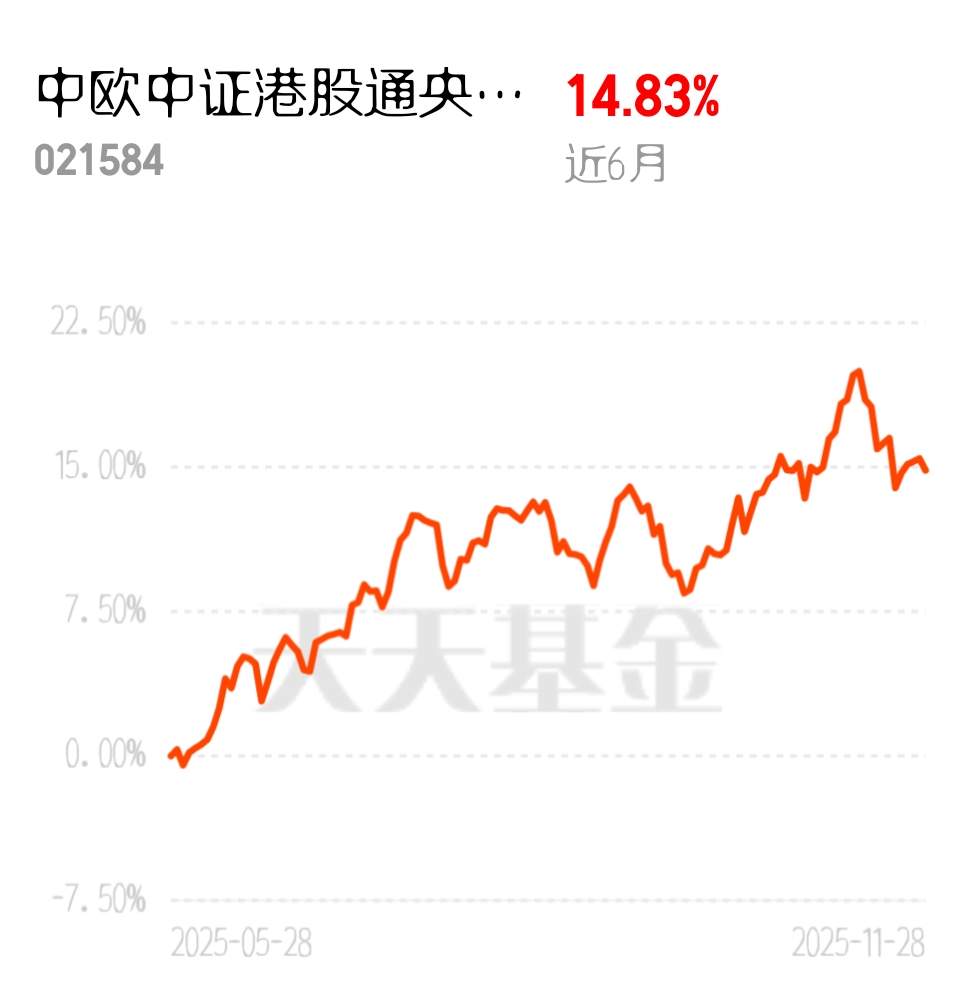 Q4 市场波动加大避险情绪升温,保险资金扎堆高股息资产。中欧中证港股通央企红利指数发起 (QDII) C 近 6 个月 14.83%,政策推动分红加码,安全边际拉满,把握布局好时机。