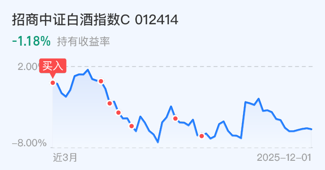 白酒板块低开早盘试图拉升,未果震荡低走,板块近期走的比较震荡,投资信心不足,盘中直接跌破了上涨趋势线支撑,走势进一步转弱,虽说整体位置不算高,但是破位之后可能还要向下寻找前低支撑了。$招商中证白酒指数C$今日不动。$招商中证白酒指数(LOF)C(OTCFUND|012414)$