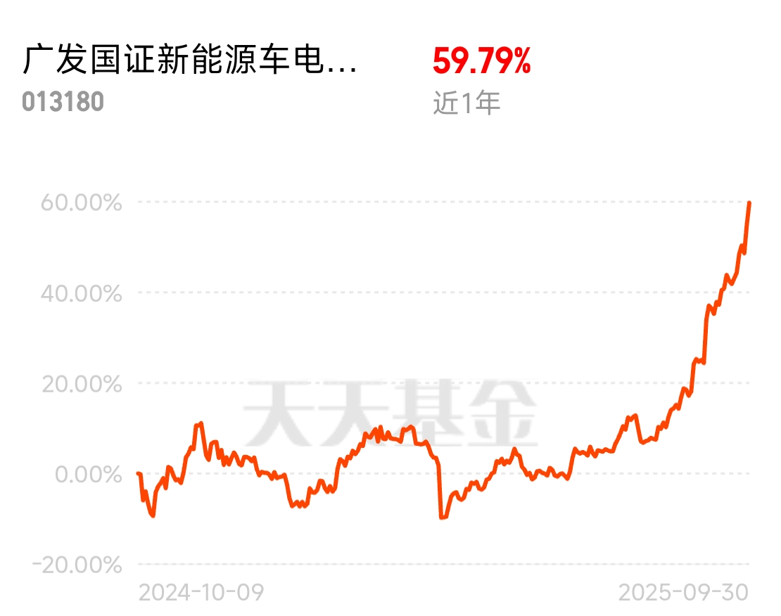不错啊我重仓的几个里面$广发国证新能源车电池ETF联接C$算是很能涨的了,难怪一