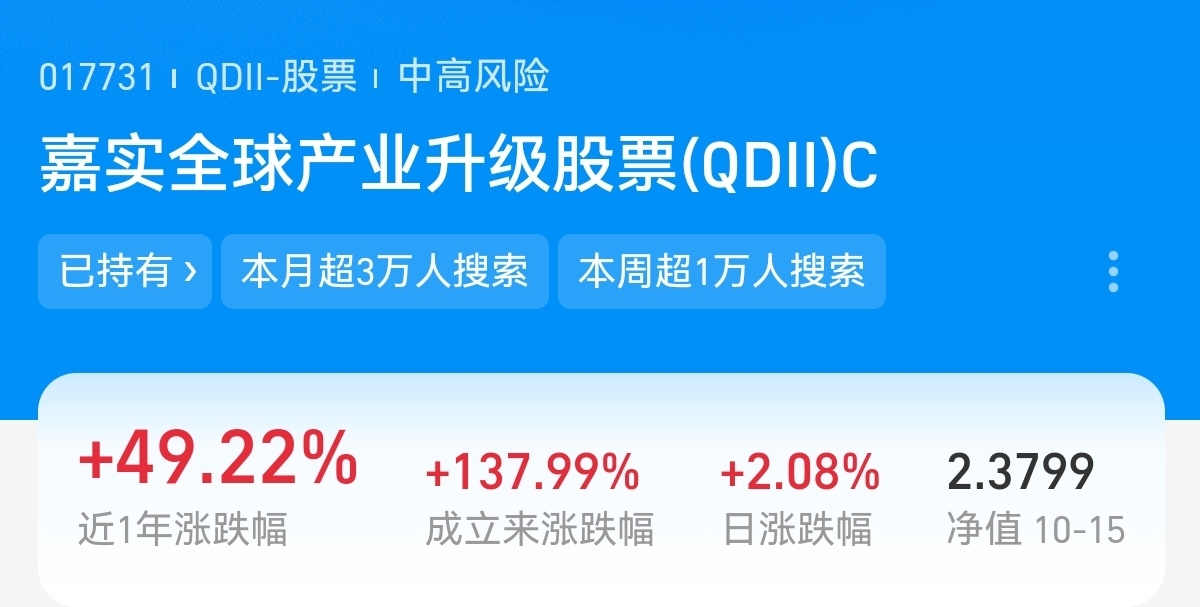 利好来了鲍威尔暗示10月降息,美股回暖。今天期待的$嘉实全球产业升级股票(QDI