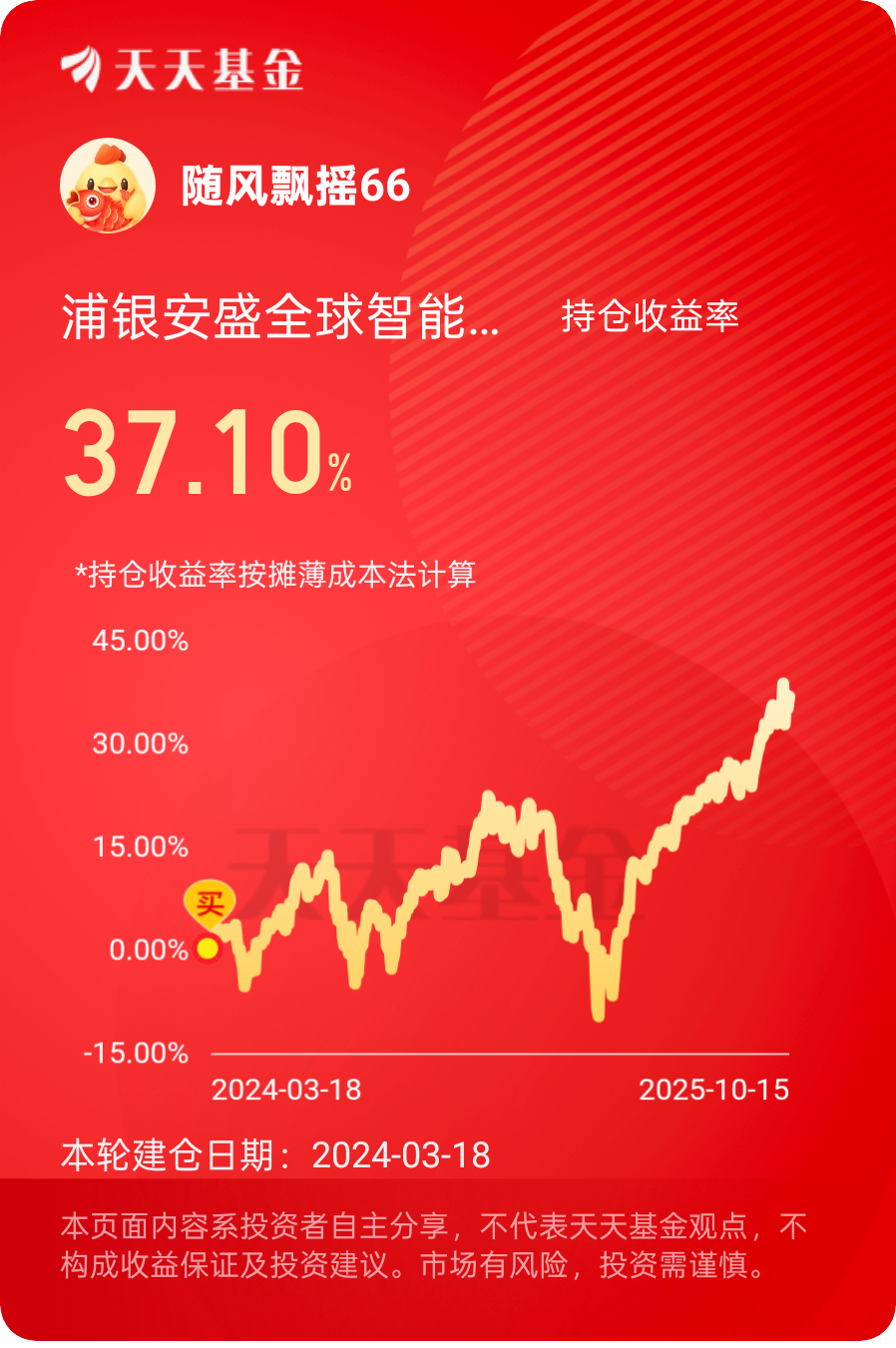 台积电阿斯麦财报超预期又迎利好,看来定投美股市场是大多数人实现财富快速增长的最优途径,$浦银安盛全球智能科技(QDII)C$ 重仓七姐妹,海外AI产业链一条龙都覆盖了,不限购,操作灵活,轻松跟上#晒收益#