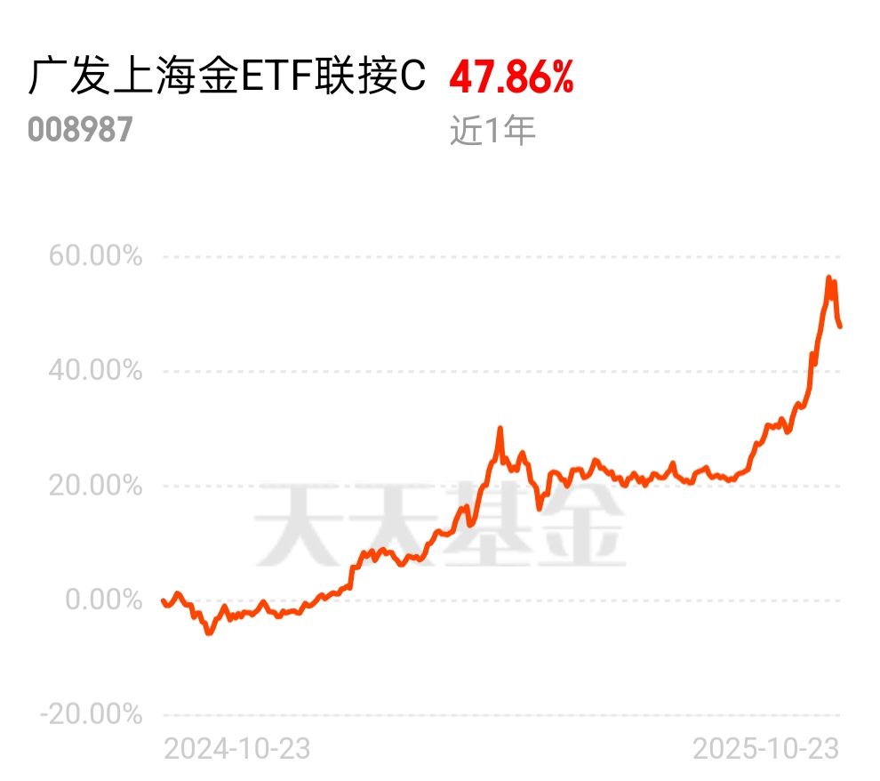 还有多余子弹的兄弟们跟着我一起冲一下$广发上海金ETF联接C$!这个基近一年就上