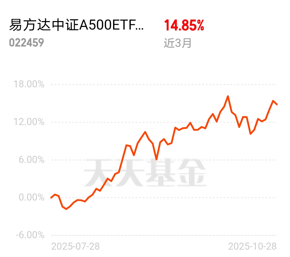 现在越来越多场外投资者关注中证A500,联接基金成了好渠道。易方达中证A500ETF联接A近3个月收益14.58%,方便参与。