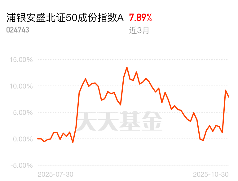 浦银北证50成立以来跑赢指数,费率低不限额,7天免赎回费,是个不错的选择$浦银安盛北证50成份指数A$