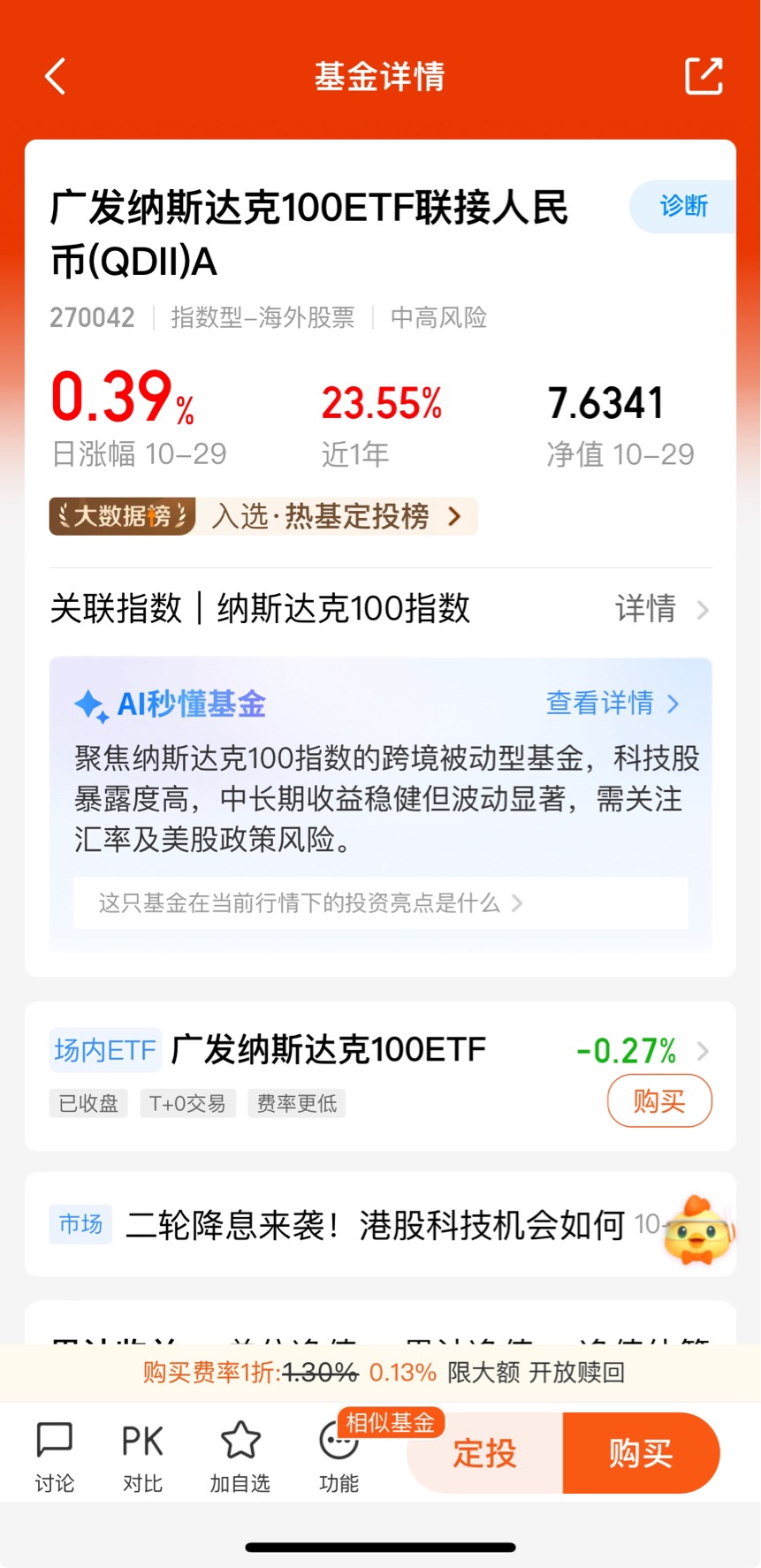 这边在拿着,转一部分仓位去广发全球精选A,买的也是全球优质企业,美股