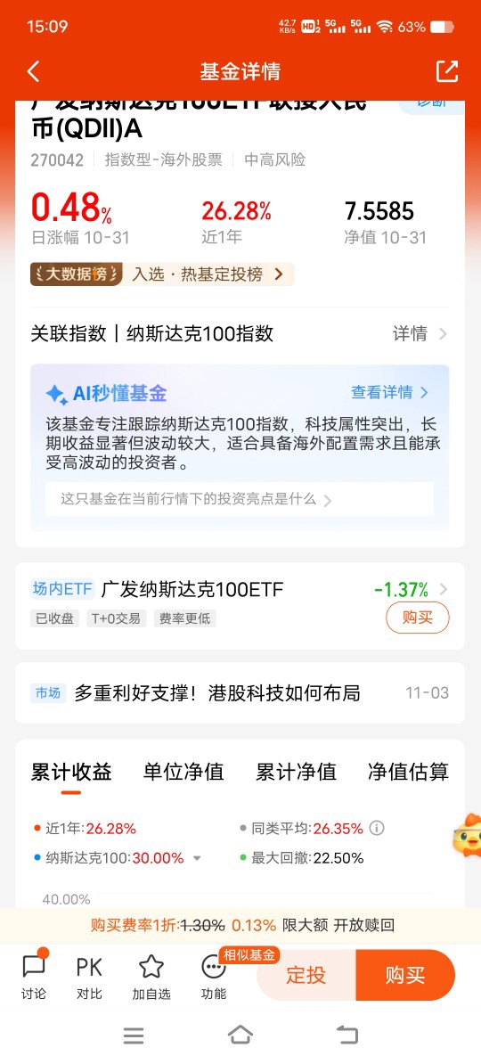 广发全球精选A(270023),波动小拿着安心,也是不错的