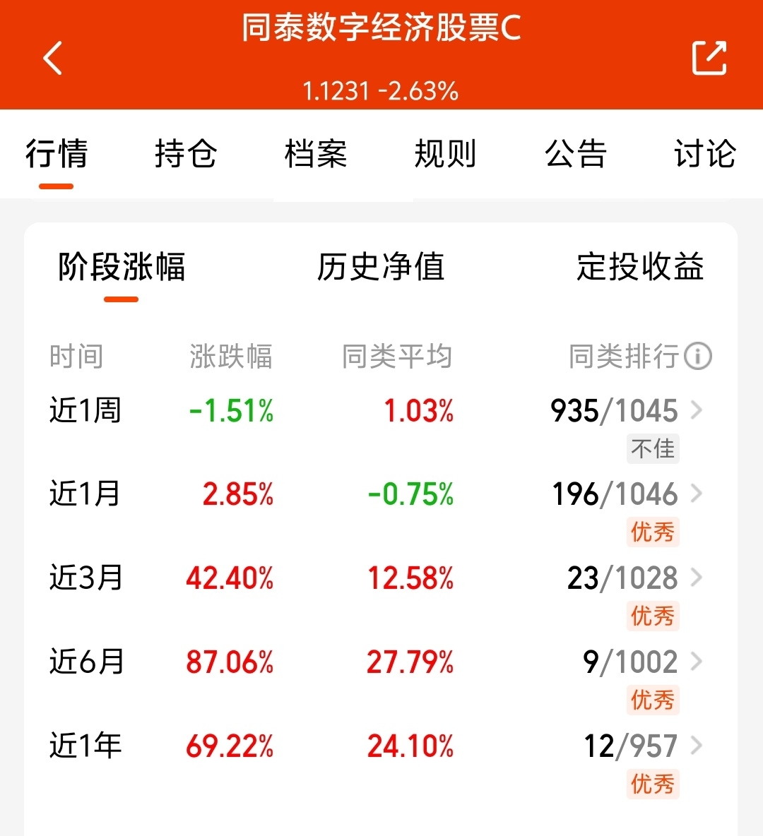 同泰数字经济C,69.22%收益杀疯!算力+半导体+光模块三核驱动,经理中科大出身,半导体实战王,各阶段优秀!$同泰数字经济股票C$